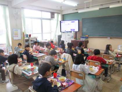 3学期の給食開始です。雪のちらつく寒い一日となりましたが,身も心も温まる給食はうれしい限りです。