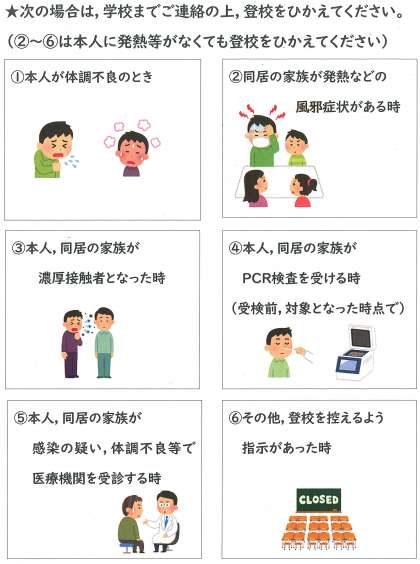 ※感染拡大防止のため,以下の時は登校を控えてくださいますよう,ご協力をお願いいたします。