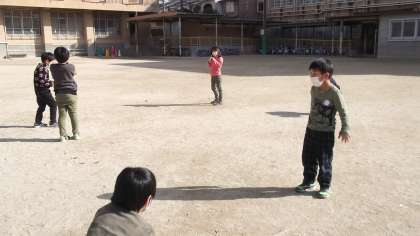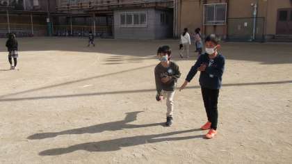 1年生が昔遊び「竹とんぼ」をしていました。なかなかうまく回せず,竹とんぼは落下してばかりでした。しかし,最後には練習に練習を重ねうまくとばせることができました。子たちは大喜び。練習をした成果を感じることができるひと時でした。
