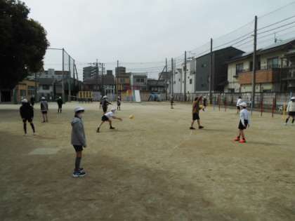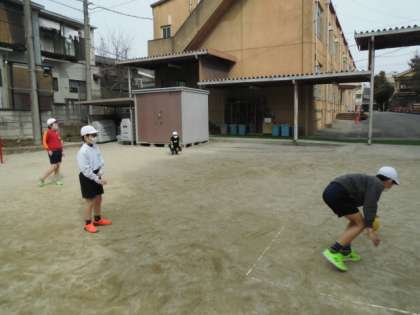 「タグラグビー」を楽しみました。はじめにボールを回転させてパスを出す練習をみんなでしました。「なかなかうまくとばない」「あいてまでとどかない」と苦戦していましたが,最後にはみんなじょうずに投げれるようになっていました。「パスを後ろに回すのが難しいなど」つぶやくながら楽しくチームプレーをしていました。