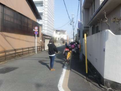 今日の安全指導では,通学路を通って登下校をすることや,歩道があるところは歩道を,ないところでは路側帯を通ること,地域での過ごし方などを確認しました。
