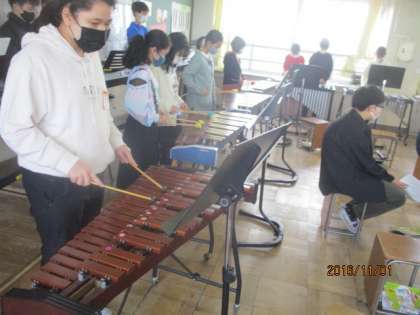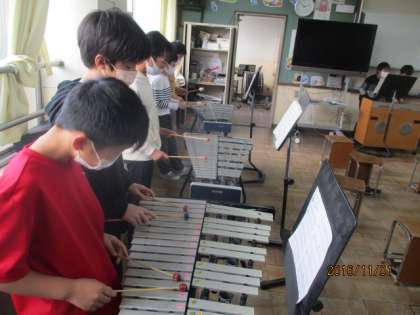 音楽科の学習では,木琴や鉄琴,ピアノ,大太鼓など,様々な楽器を使って合奏をしました。初めは,みんなでリズムに合わせてメロディーを奏でることが難しそうでしたが,各パートで練習した後にもう一度演奏すると,それぞれの楽器が奏でるメロディーがきれいに合わさってきました。