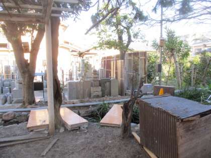 学校の隣には,ブロック塀を隔ててお寺がありますが,塀を取り崩すとお寺の敷地内と陸続きのようになります。