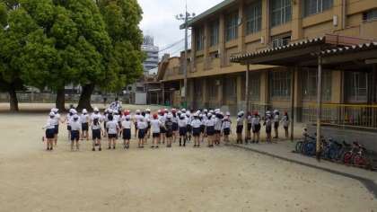 体育で50m走をしました。はじめに,準備運動や走る時の手のふり方などを確認しました。