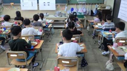 スパゲティのミートソース煮やほうれん草のソテーなどがおいしかったようで,おかわりをしている子どもたちもたくさんいました。