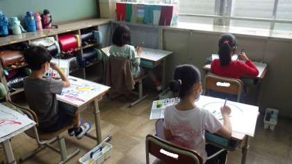 3年図画工作「絵のぐ+水+ふで=いいかんじ!」