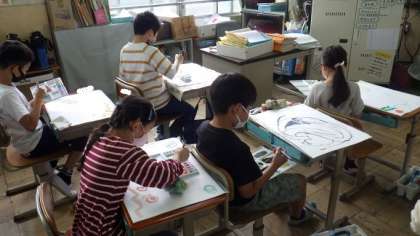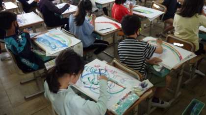 3年図画工作「絵のぐ+水+ふで=いいかんじ!」