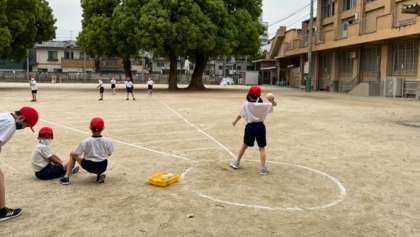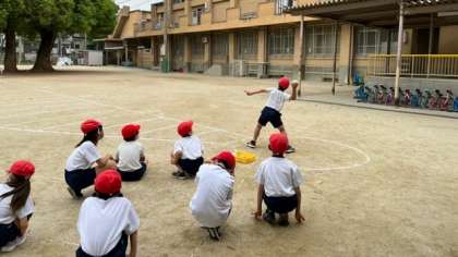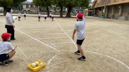 今日は3年生が新体力テストを行いました。運動場ではソフトボール投げをしました。