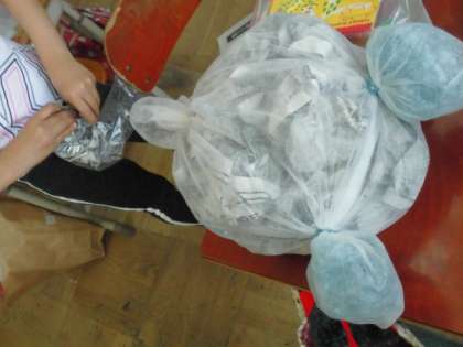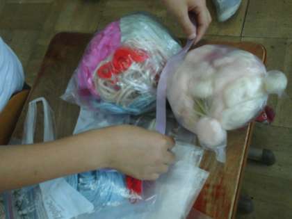 子どもたちは,どの色や材料を組み合わせようか考え,透明な袋に入れていました。