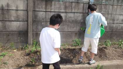 毎朝,畑の植物に水やりをしています。植物の成長を毎日喜んでいます。