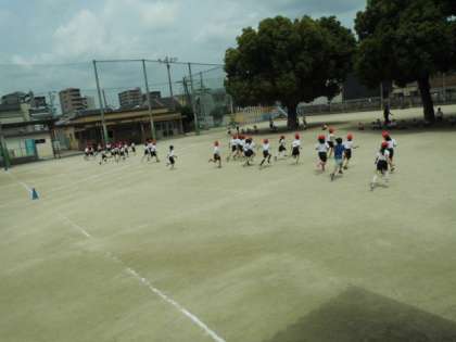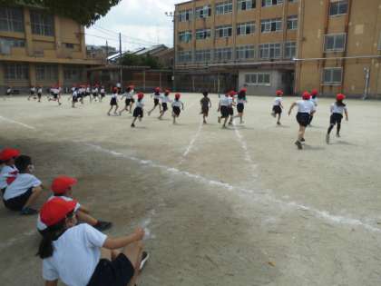 今日は体育科で新体力テストの項目の一つである「20mシャトルラン」を行いました。20mシャトルランとは,20mの間を往復する持久走です。子どもたちは,力いっぱい走っていました。