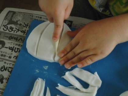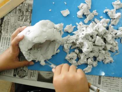 子どもたちは,用具の使い方を知り,用具を使ってできることをいろいろと試しながら,造形活動を楽しんでいました。