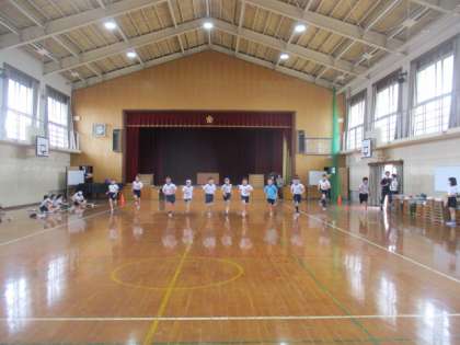 急に雨が降ってきたので,急遽,体育館でシャトルランを行いました。