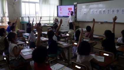 外国語活動「Hou many?」では,英語で1から10の数の言い方を知り,ミッシングゲームを楽しんでいます。