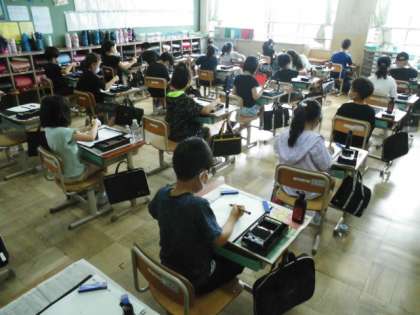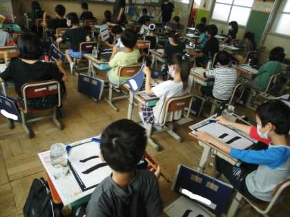 今日は,書写の学習で横画の筆使いに気をつけながら「二」を書きました。子どもたちの筆を持つ手は,真剣そのものでした。
