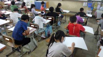 今日は雨天のため社会見学を延期し,図画工作の学習をしました。