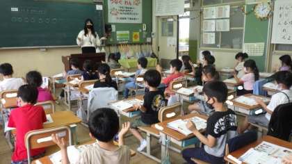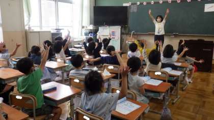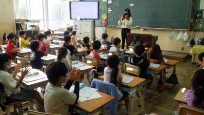 「じゃんけんぽん」や「しろくまのジェンカ」などの曲を聴いて,拍を感じながら手でリズム打ちをしたり,体を動かしたりしています。