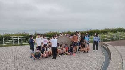 明石SAに到着です。トイレ休憩をしてクラス写真を撮ります。