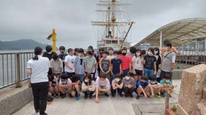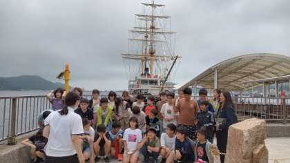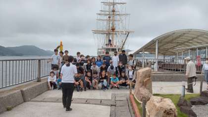 これからうずしおクルーズです。乗船前にクラスごとに写真撮影します。