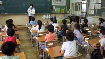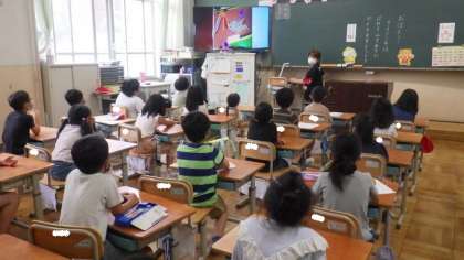 読み聞かせボランティアの皆様が1年生の教室で朝の読み聞かせをしてくださいました。不思議なお話の展開に,子どもたちも驚きの声をあげていました。