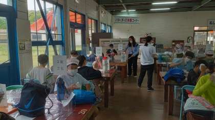 乳絞り体験の後は,バター作り体験です。