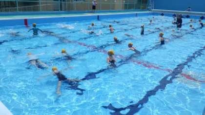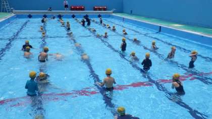 今日の3・4時間目は3年生が水泳学習をしています。もぐったり,浮いたりする運動をしています。