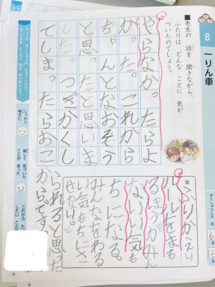 道徳科では,『一輪車』という教材を通して,「きまりをまもること」について学習しました。
