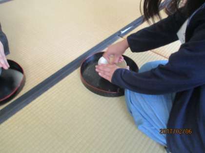 今年度最初の茶道部の活動を行いました。先生から,お茶の心得についてお話をいただき,立ち方や歩き方などの作法を教えていただきました。さらに,お茶をたて,いただきました。