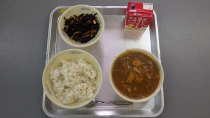 「ひじきのソテー」は、ミックスビーンズを使っています。大豆・えだ豆・手ぼう豆・金時豆のいろどりも楽しみながら食べてほしいと思います。