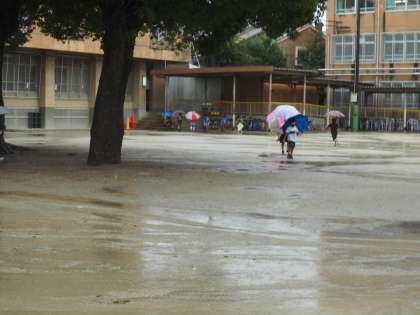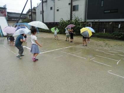 雨降りの時の運動場は,晴れた日とは違うところがいっぱいでワクワク!