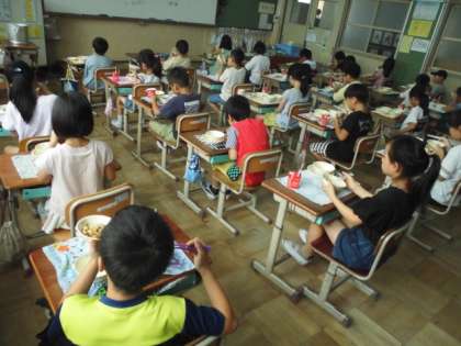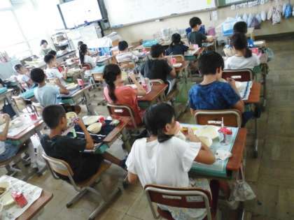 今日の給食中,改めて黙食を心掛けるよう指導しました。子どもたちは,お行儀よく静かに給食を食べていました。