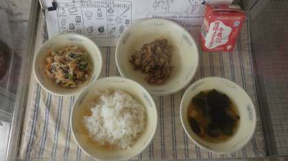 今日の給食でも、牛乳やみそ汁から水分をとることができます。