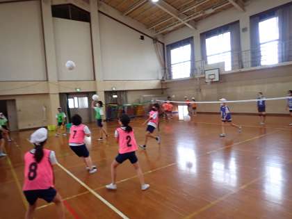 5年生は、体育でソフトバレーボールの学習をしています。ボールを落とさずにつないで、相手コートに返すためには、友達と協力することが欠かせません。チーム一丸となって一つのボールを追いかけるうちに、自然と声を掛け合ってチームワークを高めていました。