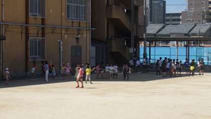 中間休みの様子です。1年生から6年生まで、たくさんの学級が大なわとびにチャレンジしています。