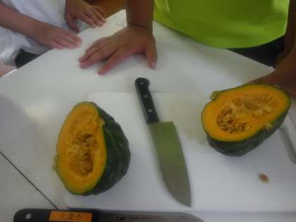 早速切ってみると,かぼちゃのいい香りに子どもたちも大喜びでした。