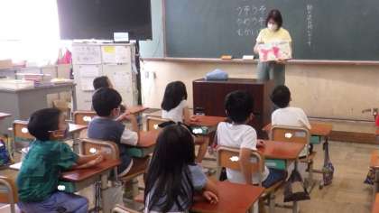 毎週水曜日に読み聞かせボランティアの皆様が、2年生の教室で読み聞かせをしてくださっています。かわうそが登場するお話やスイッチの入切についてのお話などを楽しみました。