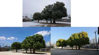 運動場のクスノキは,季節ごとにいろんな顔を見せます。