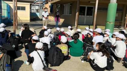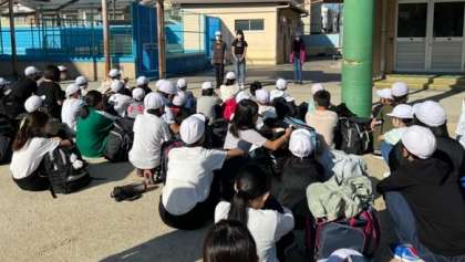素晴らしい青空。今日から一泊二日の山の家宿泊学習です。