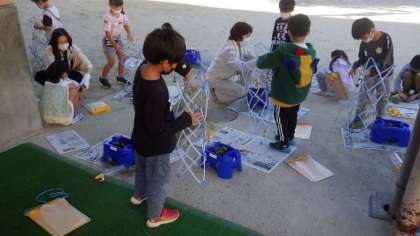 一人一鉢で育ててきたアサガオのつるを使って、リース作りをしました。PTAボランティアの皆様には子どもたちの活動のお手伝いをしていただき、ありがとうございました。