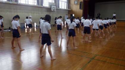 6年体育「京炎そでふれ」練習がんばっています。