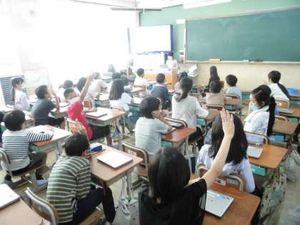 これまで自分たちで調べてきた環境問題について発表をしました。原因や対策、自分たちにも出来ることなど聞いている人たちに伝わるよいうに工夫しながら発表することができました。