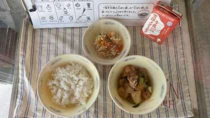 「切干大根の三ばい酢」の「三ばい酢」は、酢・さとう・しょうゆで作りました。さっぱりとした味わいです。