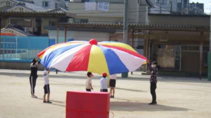 しいのみ学級のスポーツ大会での種目「くいしんぼうモンスター」の練習を、運動場で行いました。みんなで楽しく体を動かしています。