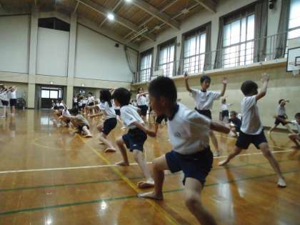 今日はあいにくのお天気で外で練習はできませんでしたが、体育館の中で練習をしました。練習を重ねるごとにどんどんそろってきました。今週末の本番が楽しみです。
