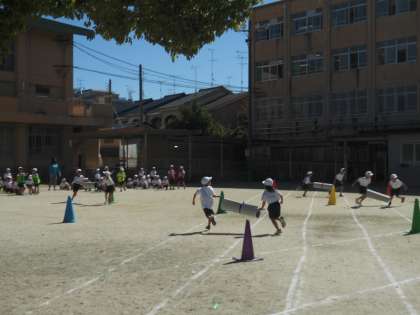22日(土)に行いますスポーツ大会に向けて、今日は最後の学年での体育の授業を行い50m走、リレーで力一杯走る姿、声を掛け合い、励まし合う姿が見られました。