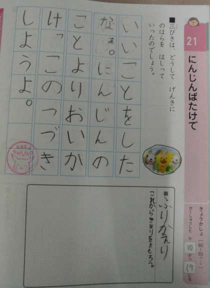 1年生特別の教科道徳「にんじんばたけで」