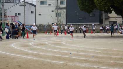 5年生の100メートル走の様子です。2年生・4年生も声援をおくっていました。