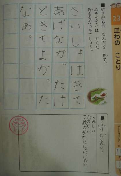 今週の特別の教科道徳は「二わのことり」のお話を通して、友達と仲良くすること、友達の気持ちを考えるということについてみんなで考えました。