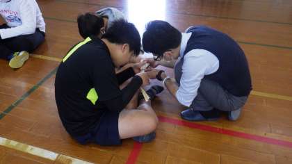 6年生の交流学習で,「京扇子づくり体験」をしました。