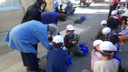地域女性会の皆様にお世話になり、1年生が花の寄せ植えをしました。これまで一人一鉢でアサガオを育てていましたが、次はチューリップの球根とビオラの苗を植えました。これからも大切に育ててほしいと思います。